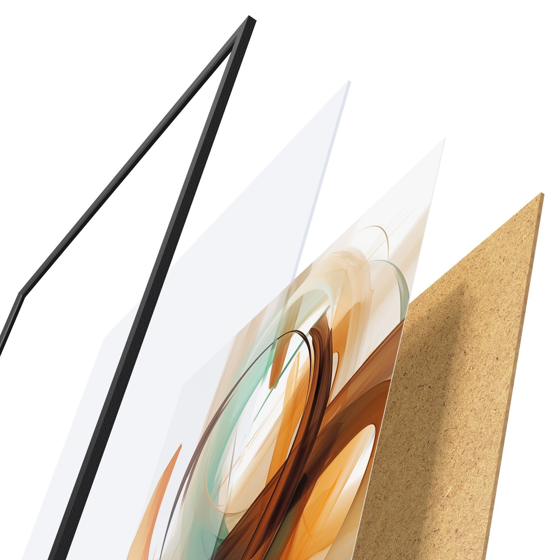 Das Poster besteht aus einem Rahmen, Plexiglas, einem gedruckten Bild und einer Rückwand aus Spanplatten. Dank der Halterungen auf der Rückseite kann das Poster sofort an die Wand gehängt werden.