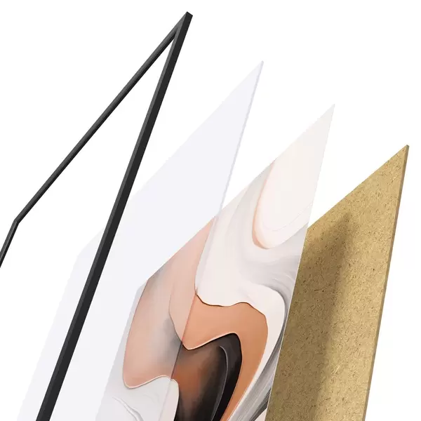 Das Poster besteht aus einem Rahmen, Plexiglas, einem gedruckten Bild und einer Rückwand aus Spanplatten. Dank der Halterungen auf der Rückseite kann das Poster sofort an die Wand gehängt werden.