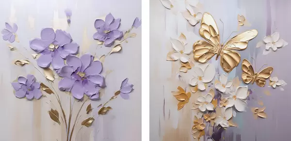 Poster Schmetterlinge und Blumen Imitationsmalerei Nr d01046