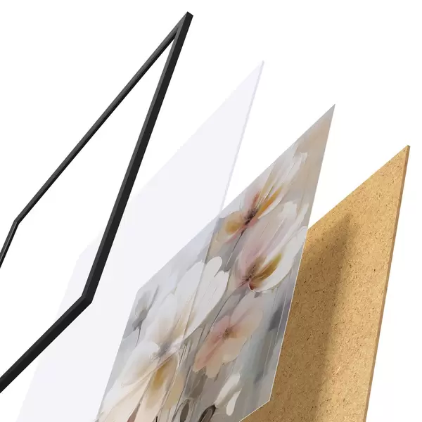 Das Poster besteht aus einem Rahmen, Plexiglas, einem gedruckten Bild und einer Rückwand aus Spanplatten. Dank der Halterungen auf der Rückseite kann das Poster sofort an die Wand gehängt werden.