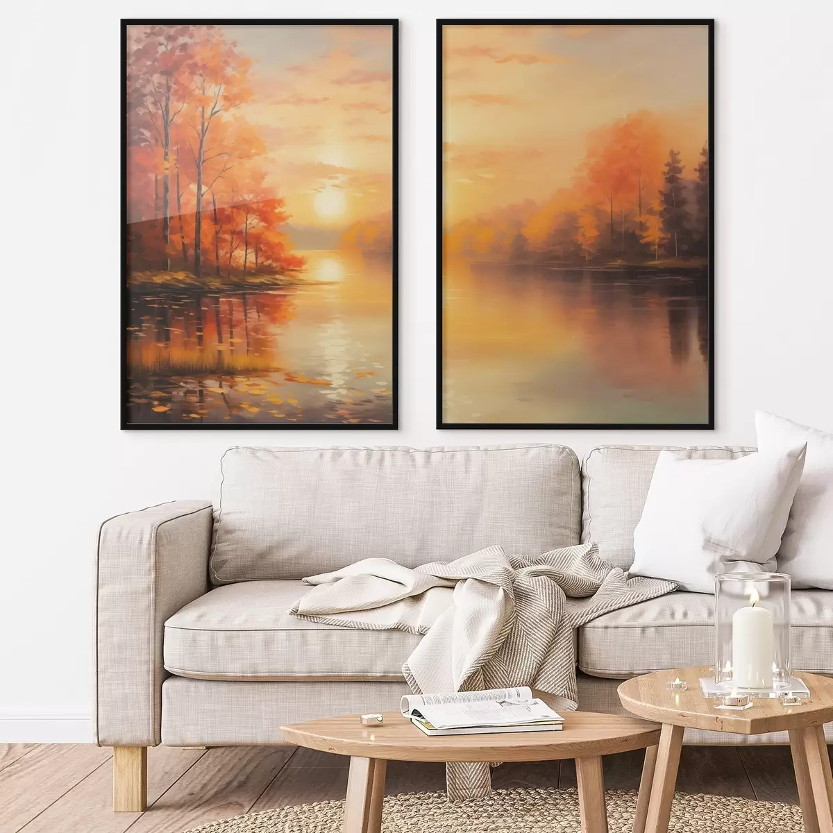Poster Herbstwald vor dem Sonnenuntergang Nr d01051