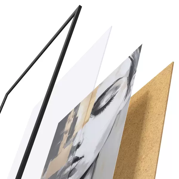 Das Poster besteht aus einem Rahmen, Plexiglas, einem gedruckten Bild und einer Rückwand aus Spanplatten. Dank der Halterungen auf der Rückseite kann das Poster sofort an die Wand gehängt werden.