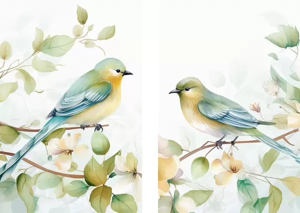 Poster Zwei Meisen auf Jasminzweigen Nr d01069