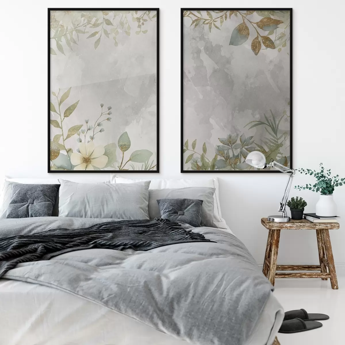 Poster Zarte Pflanzen auf hellgrauem Hintergrund Nr d01070