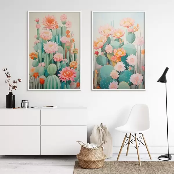 Poster Kakteen mit großen Blüten, Pastellfarben und einer ruhigen Ausstrahlung d01086