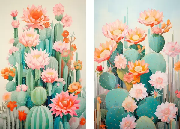 Poster Kakteen mit großen Blüten, Pastellfarben und einer ruhigen Ausstrahlung d01086