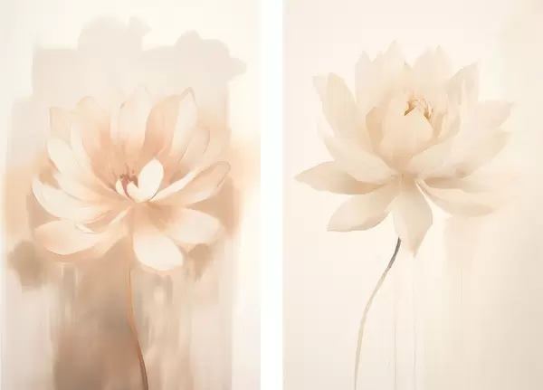 Poster Blumenkomposition in warmen Beigetönen mit leichten Pinselstrichen und einem luftigen Hintergrund Nr d01087