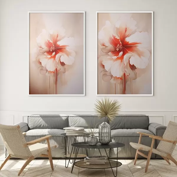 Poster Weiße Korallenblütenblätter auf abstraktem Hintergrund, ruhige Komposition Nr d01089