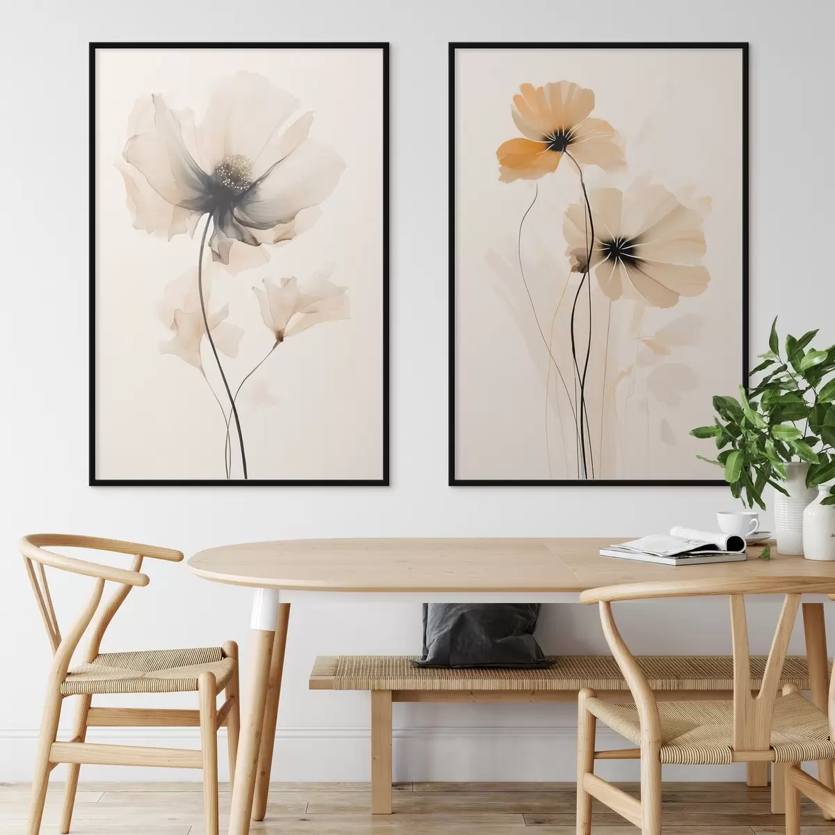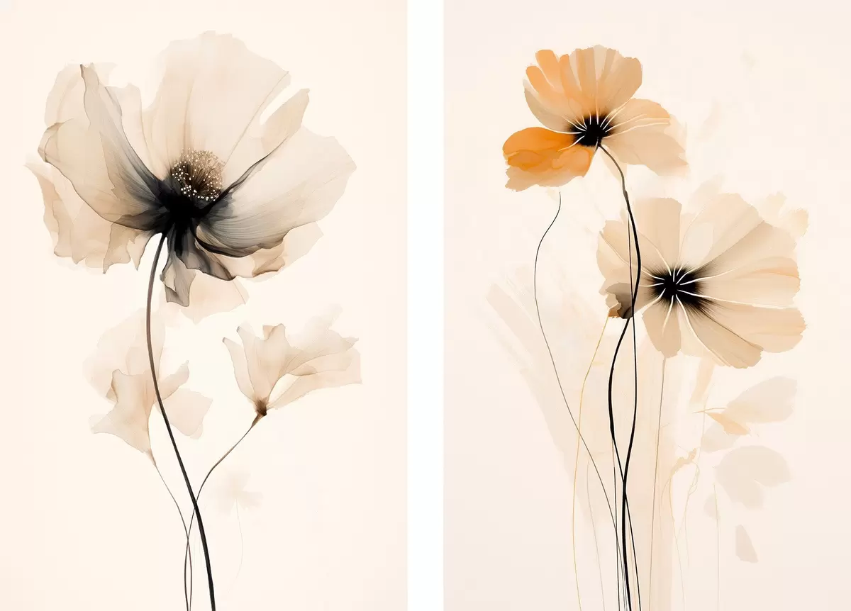 Poster Helle Aquarell-Mohnblumen mit weichen Schatten und luftigem Raum d01091