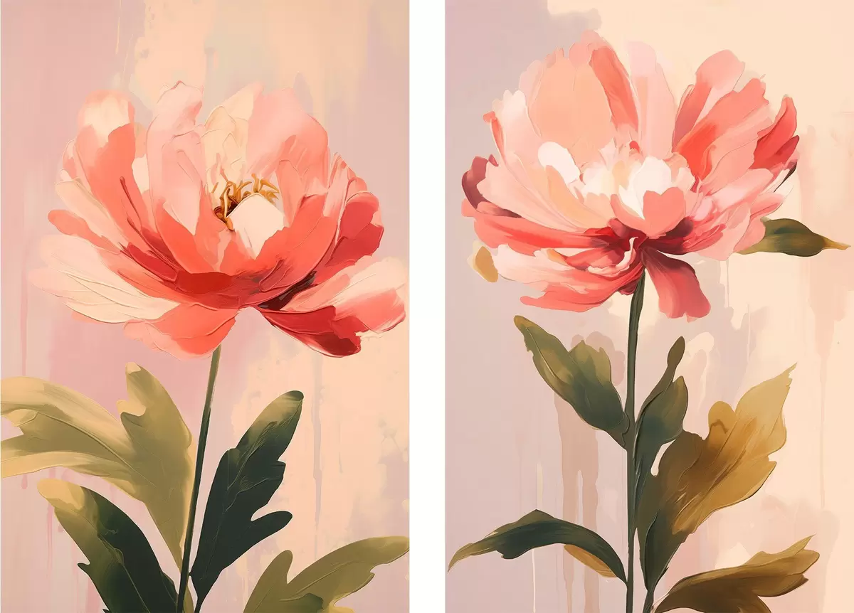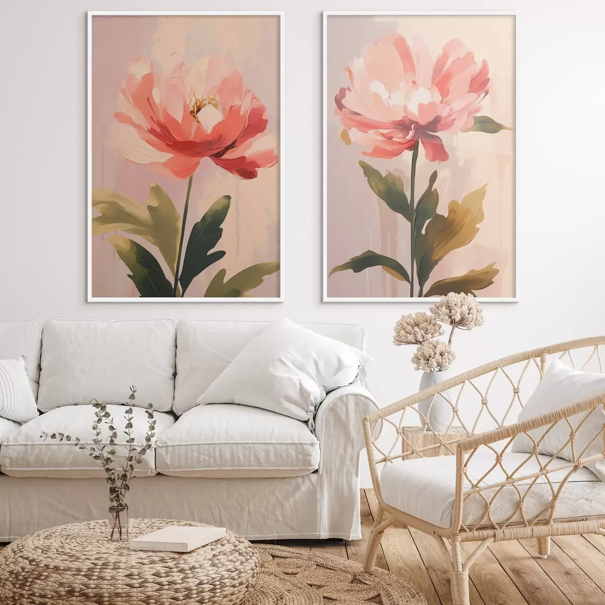 Poster Pastellfarbene Pfingstrosen auf hohen Stielen in warmen Rosatönen Nr d01093