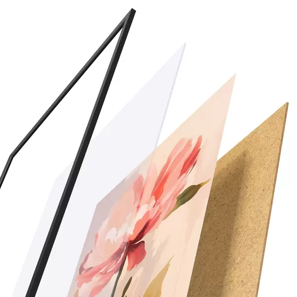 Das Poster besteht aus einem Rahmen, Plexiglas, einem gedruckten Bild und einer Rückwand aus Spanplatten. Dank der Halterungen auf der Rückseite kann das Poster sofort an die Wand gehängt werden.