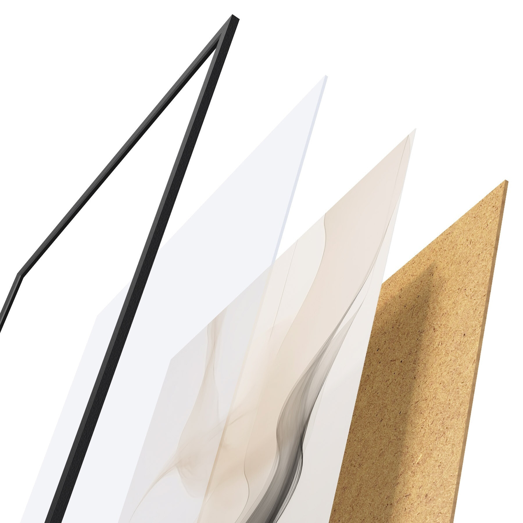 Das Poster besteht aus einem Rahmen, Plexiglas, einem gedruckten Bild und einer Rückwand aus Spanplatten. Dank der Halterungen auf der Rückseite kann das Poster sofort an die Wand gehängt werden.