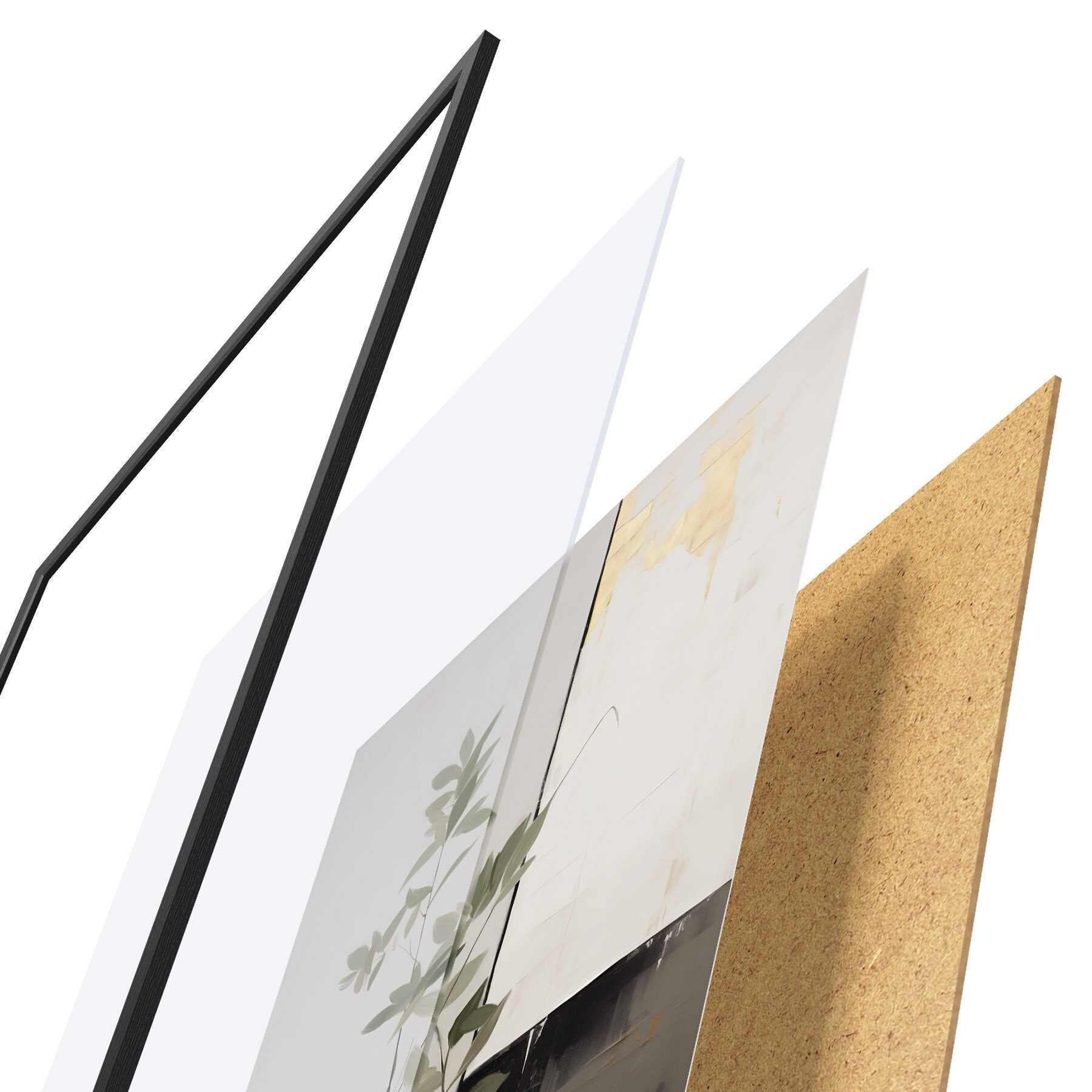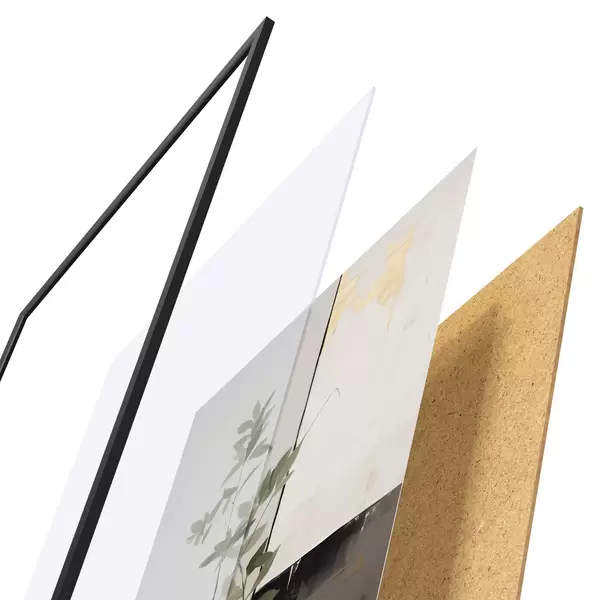 Das Poster besteht aus einem Rahmen, Plexiglas, einem gedruckten Bild und einer Rückwand aus Spanplatten. Dank der Halterungen auf der Rückseite kann das Poster sofort an die Wand gehängt werden.