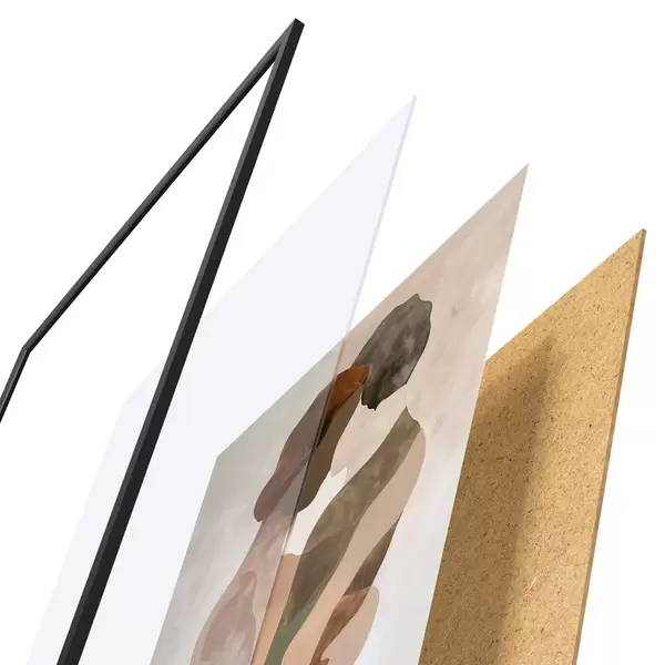 Das Poster besteht aus einem Rahmen, Plexiglas, einem gedruckten Bild und einer Rückwand aus Spanplatten. Dank der Halterungen auf der Rückseite kann das Poster sofort an die Wand gehängt werden.