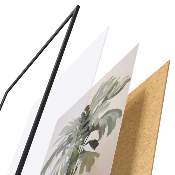 Das Poster besteht aus einem Rahmen, Plexiglas, einem gedruckten Bild und einer Rückwand aus Spanplatten. Dank der Halterungen auf der Rückseite kann das Poster sofort an die Wand gehängt werden.