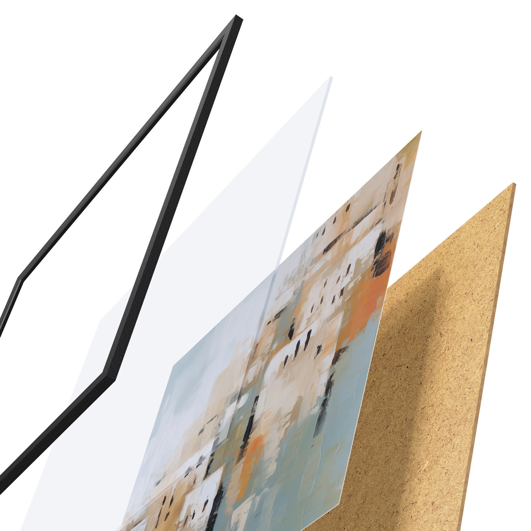 Das Poster besteht aus einem Rahmen, Plexiglas, einem gedruckten Bild und einer Rückwand aus Spanplatten. Dank der Halterungen auf der Rückseite kann das Poster sofort an die Wand gehängt werden.