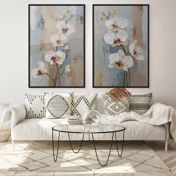 Poster weiße Orchideenblüten im Stil eines Ölgemäldes Nr d01175
