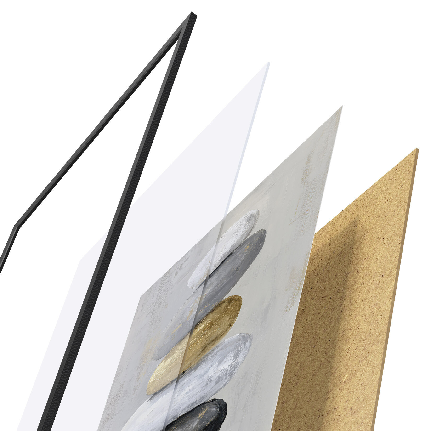 Das Poster besteht aus einem Rahmen, Plexiglas, einem gedruckten Bild und einer Rückwand aus Spanplatten. Dank der Halterungen auf der Rückseite kann das Poster sofort an die Wand gehängt werden.