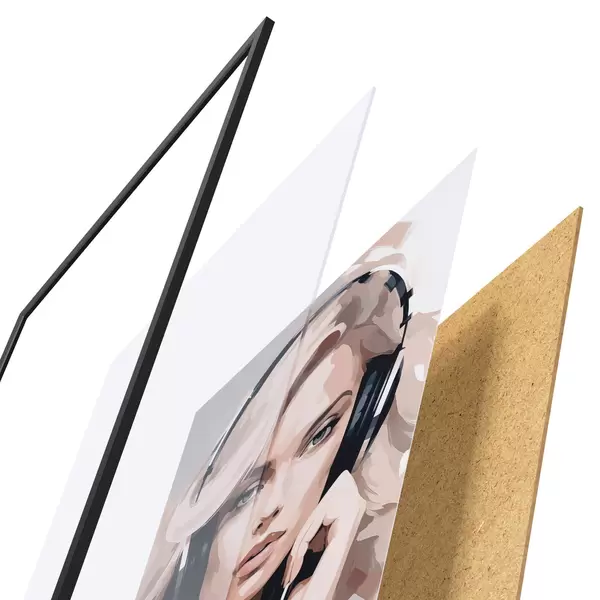 Das Poster besteht aus einem Rahmen, Plexiglas, einem gedruckten Bild und einer Rückwand aus Spanplatten. Dank der Halterungen auf der Rückseite kann das Poster sofort an die Wand gehängt werden.