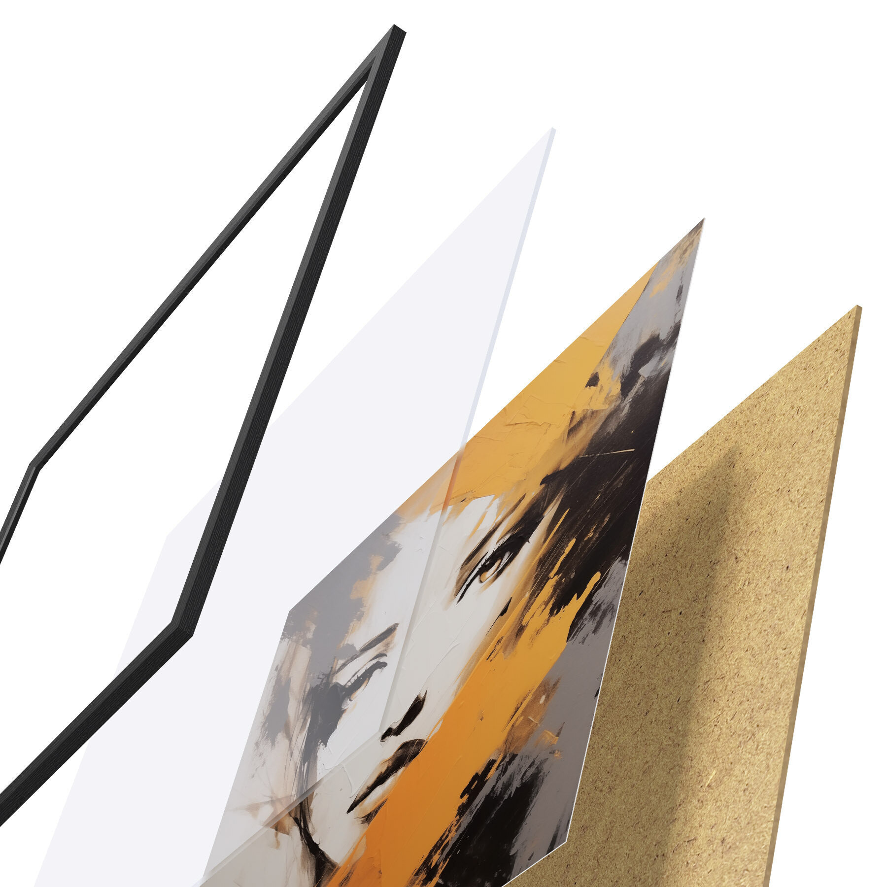 Das Poster besteht aus einem Rahmen, Plexiglas, einem gedruckten Bild und einer Rückwand aus Spanplatten. Dank der Halterungen auf der Rückseite kann das Poster sofort an die Wand gehängt werden.