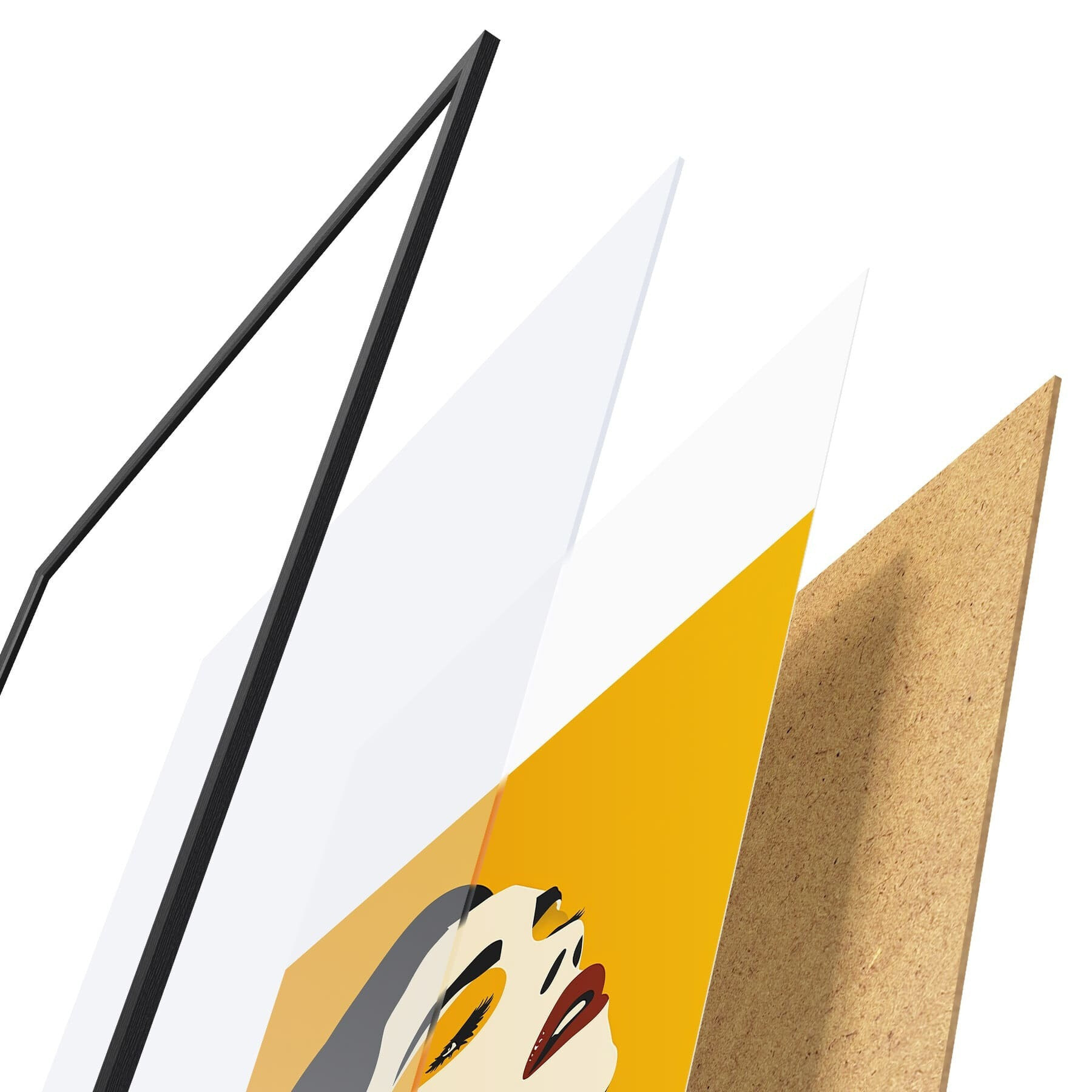 Das Poster besteht aus einem Rahmen, Plexiglas, einem gedruckten Bild und einer Rückwand aus Spanplatten. Dank der Halterungen auf der Rückseite kann das Poster sofort an die Wand gehängt werden.
