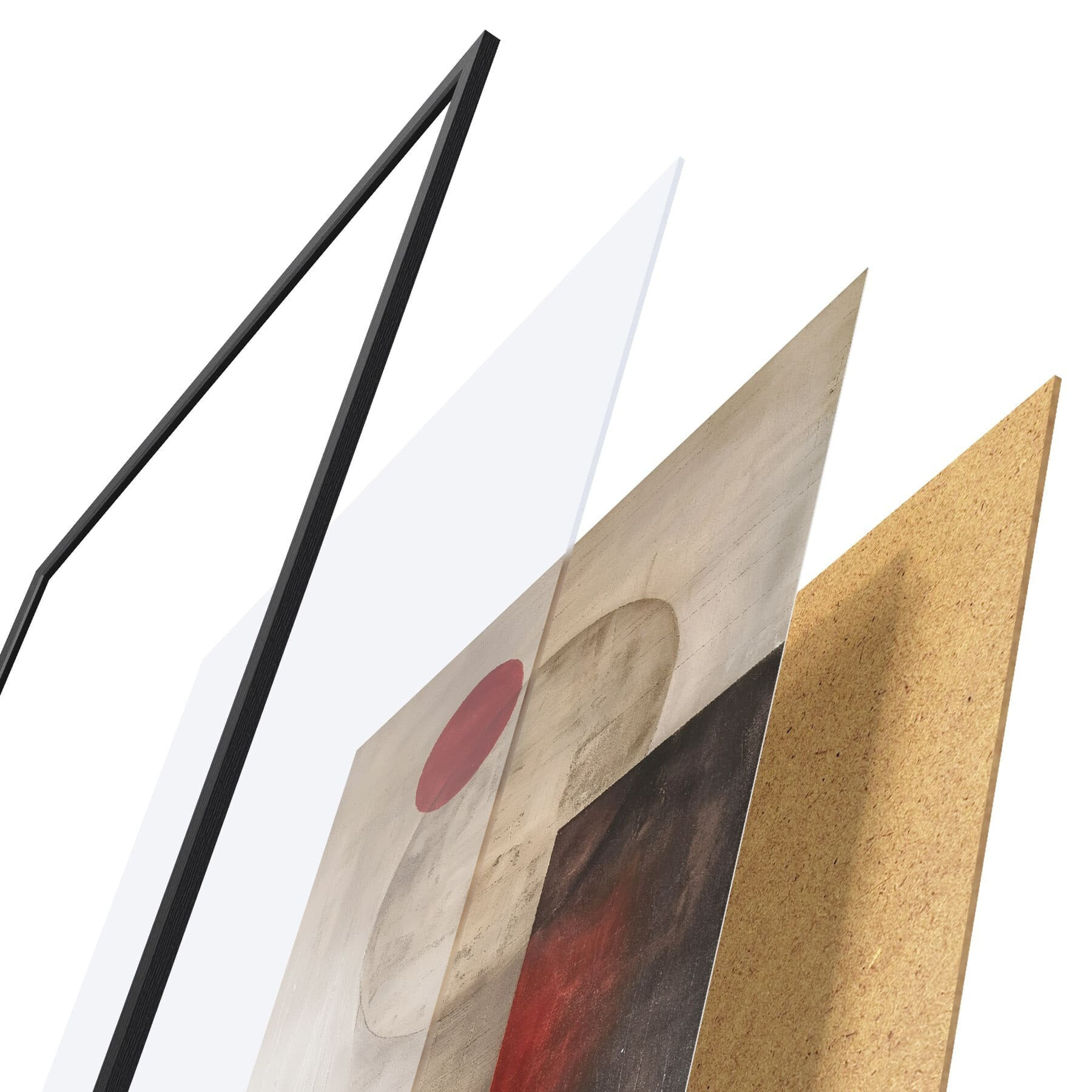 Das Poster besteht aus einem Rahmen, Plexiglas, einem gedruckten Bild und einer Rückwand aus Spanplatten. Dank der Halterungen auf der Rückseite kann das Poster sofort an die Wand gehängt werden.