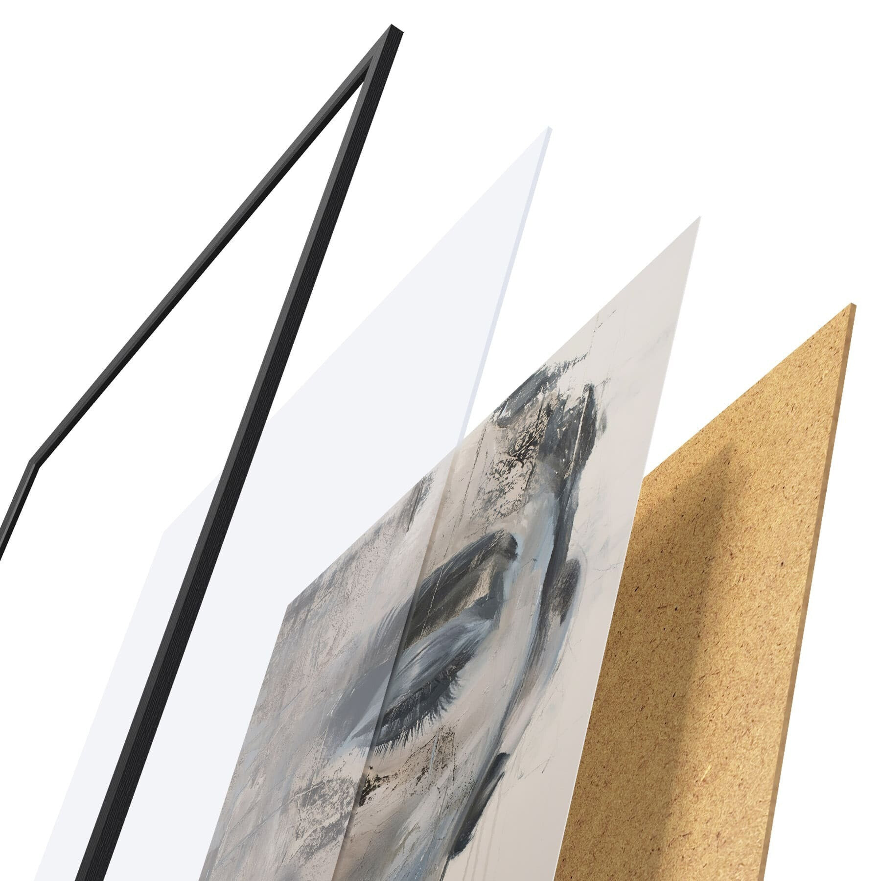 Das Poster besteht aus einem Rahmen, Plexiglas, einem gedruckten Bild und einer Rückwand aus Spanplatten. Dank der Halterungen auf der Rückseite kann das Poster sofort an die Wand gehängt werden.