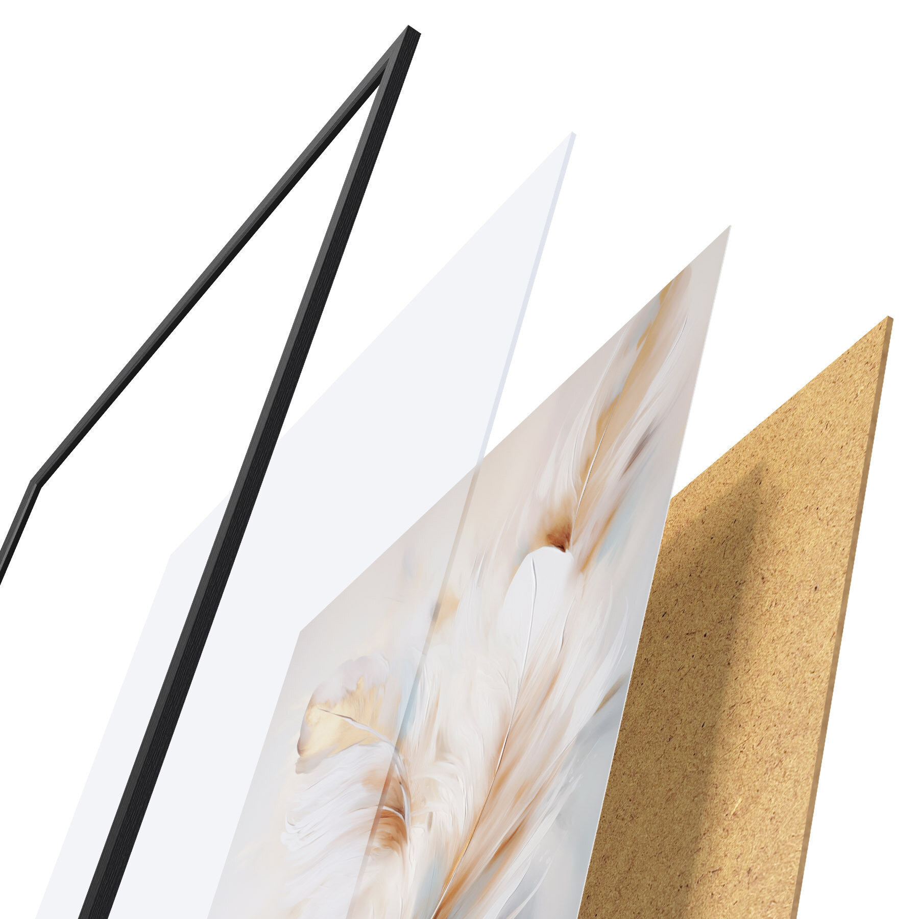 Das Poster besteht aus einem Rahmen, Plexiglas, einem gedruckten Bild und einer Rückwand aus Spanplatten. Dank der Halterungen auf der Rückseite kann das Poster sofort an die Wand gehängt werden.