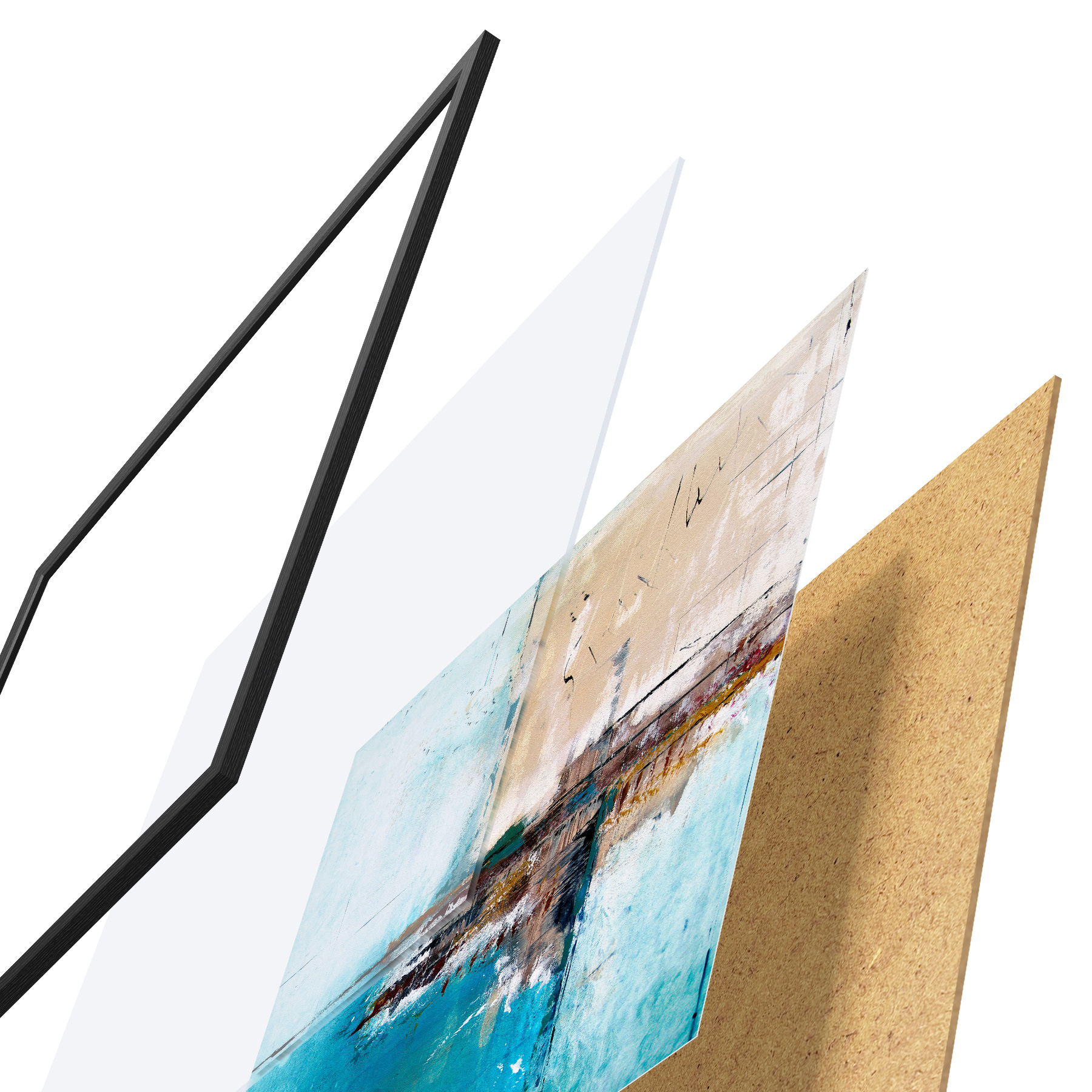 Das Poster besteht aus einem Rahmen, Plexiglas, einem gedruckten Bild und einer Rückwand aus Spanplatten. Dank der Halterungen auf der Rückseite kann das Poster sofort an die Wand gehängt werden.