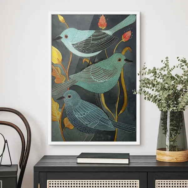 Poster Bunte Vögel inmitten von lebhaftem Laub Nr f03061