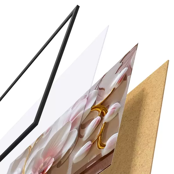 Das Poster besteht aus einem Rahmen, Plexiglas, einem gedruckten Bild und einer Rückwand aus Spanplatten. Dank der Halterungen auf der Rückseite kann das Poster sofort an die Wand gehängt werden.