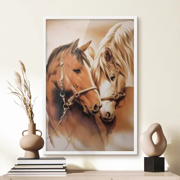 Poster Majestätische Pferde in sanfter Umarmung f03697
