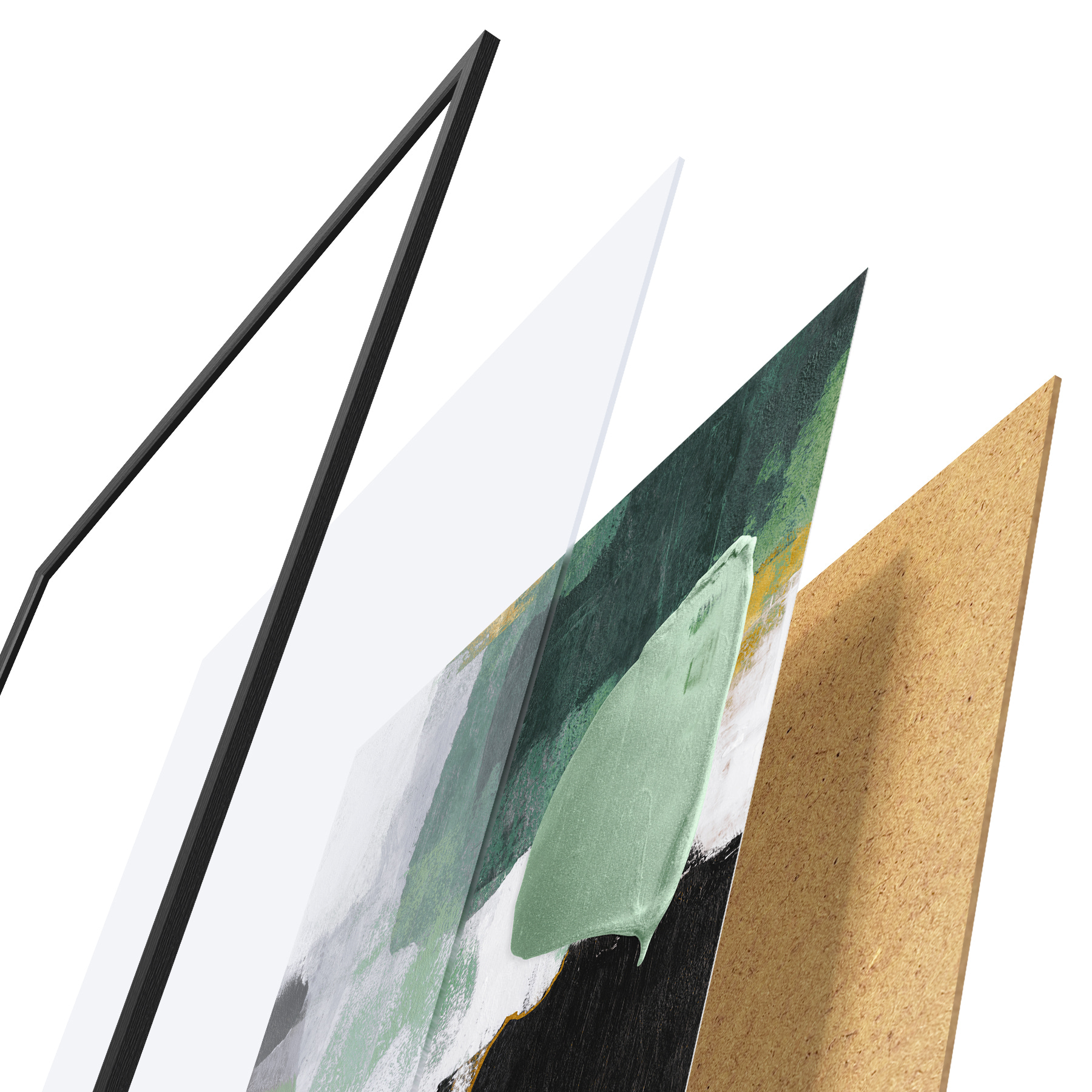 Das Poster besteht aus einem Rahmen, Plexiglas, einem gedruckten Bild und einer Rückwand aus Spanplatten. Dank der Halterungen auf der Rückseite kann das Poster sofort an die Wand gehängt werden.