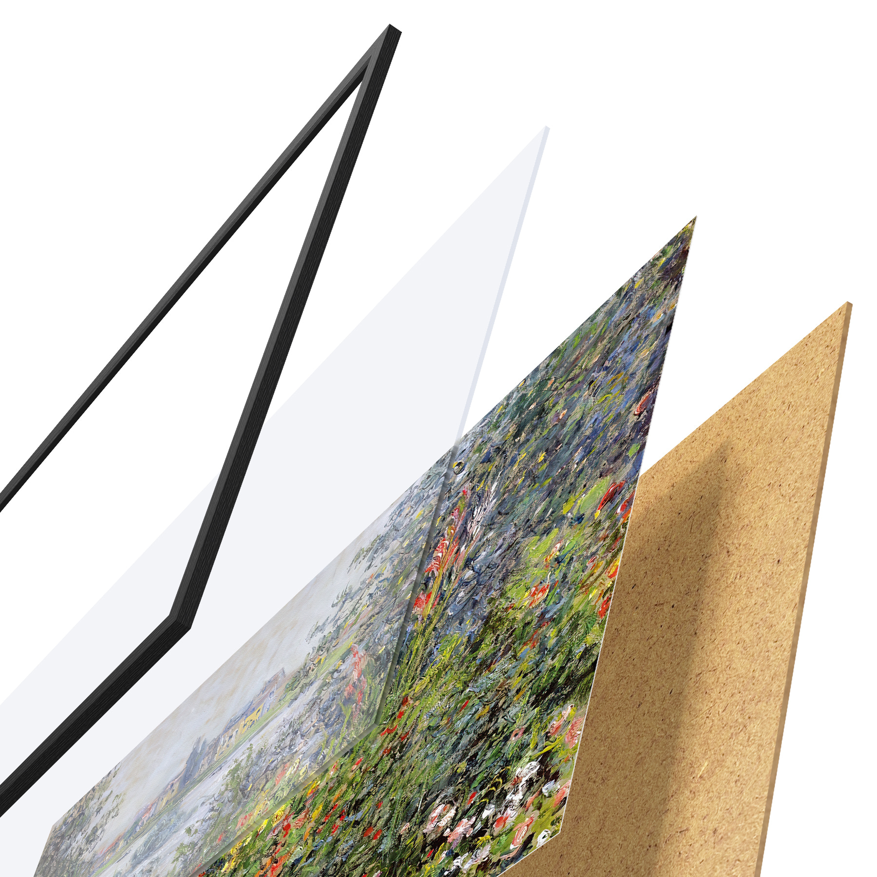 Das Poster besteht aus einem Rahmen, Plexiglas, einem gedruckten Bild und einer Rückwand aus Spanplatten. Dank der Halterungen auf der Rückseite kann das Poster sofort an die Wand gehängt werden.