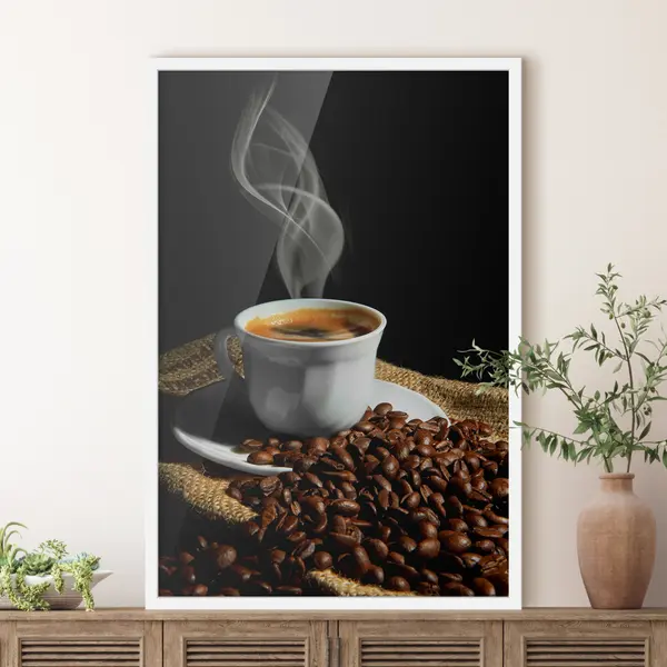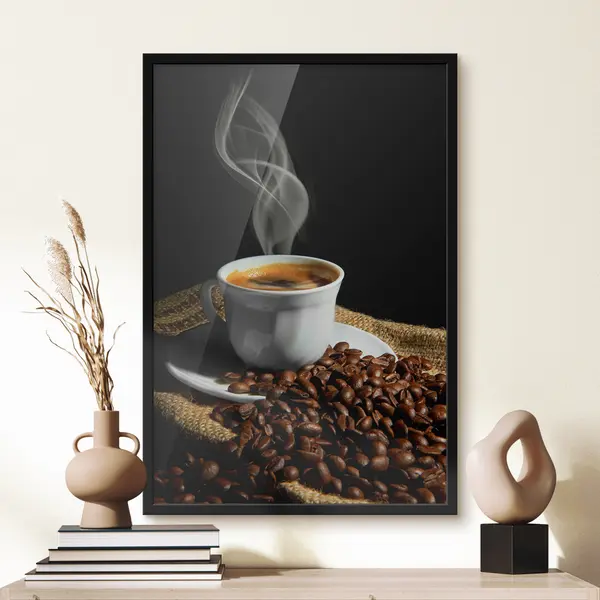 Poster Eine dampfende Tasse frischer Kaffee Nr f07770
