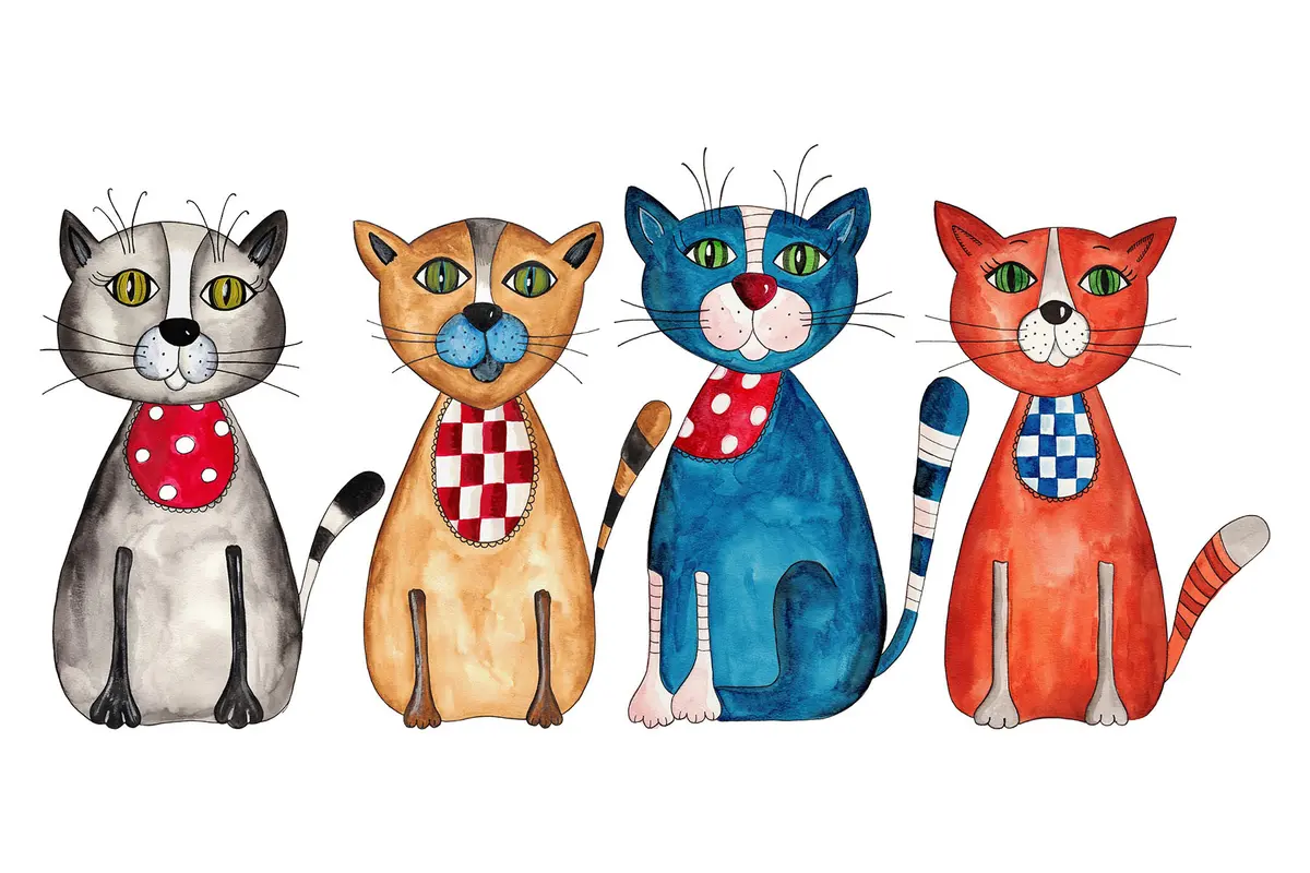 Poster Bunte Katzen mit charmantem Gesichtsausdruck f08754