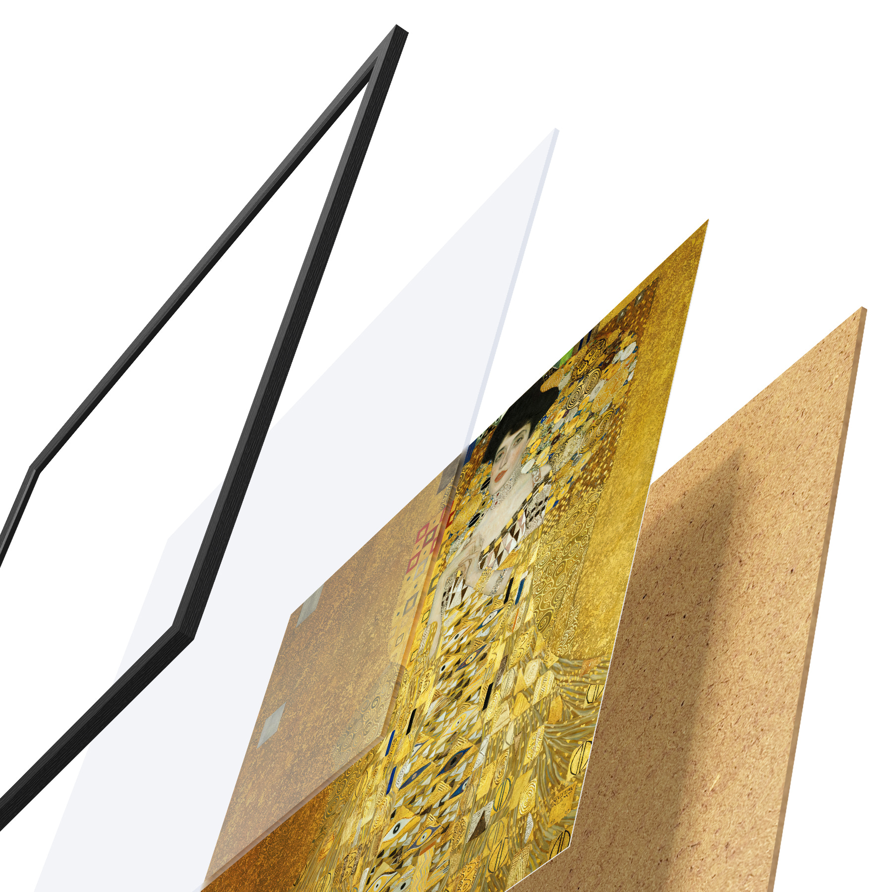 Das Poster besteht aus einem Rahmen, Plexiglas, einem gedruckten Bild und einer Rückwand aus Spanplatten. Dank der Halterungen auf der Rückseite kann das Poster sofort an die Wand gehängt werden.