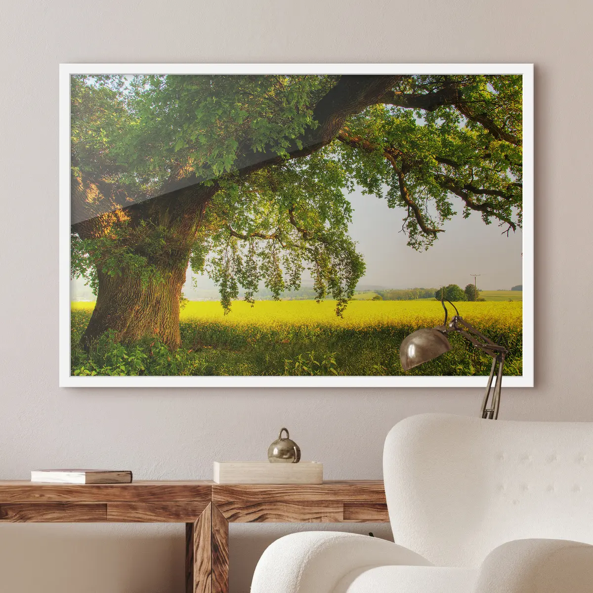 Poster Majestätischer Baum neben goldenem Feld Nr f15283
