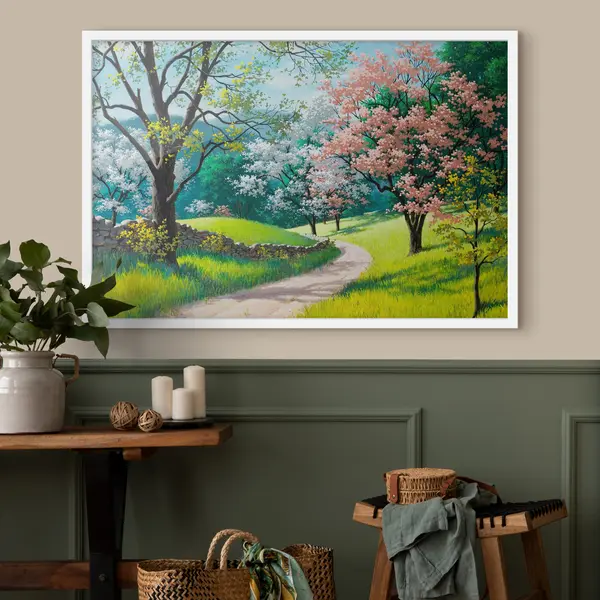 Poster Blühende Bäume entlang eines gewundenen Pfades Nr f15350