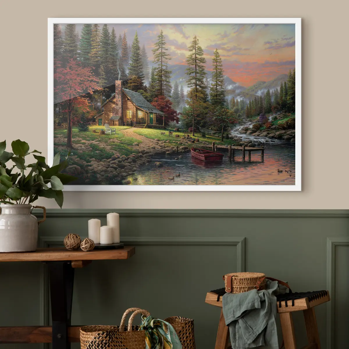 Poster Ruhige Hütte am friedlichen Fluss Nr f15556