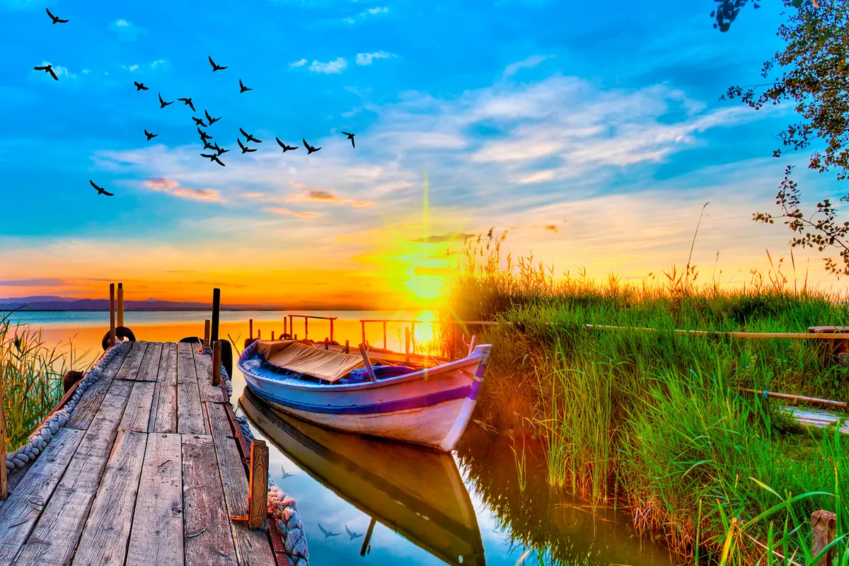 Poster Ruhiger Sonnenuntergang auf stillen Gewässern f17989