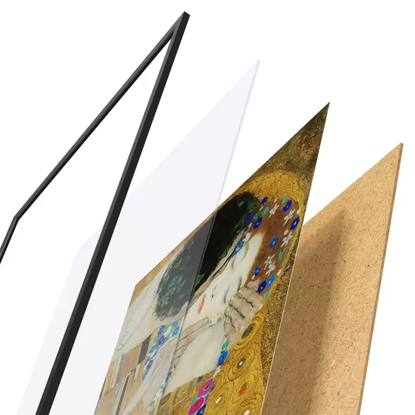 Das Poster besteht aus einem Rahmen, Plexiglas, einem gedruckten Bild und einer Rückwand aus Spanplatten. Dank der Halterungen auf der Rückseite kann das Poster sofort an die Wand gehängt werden.