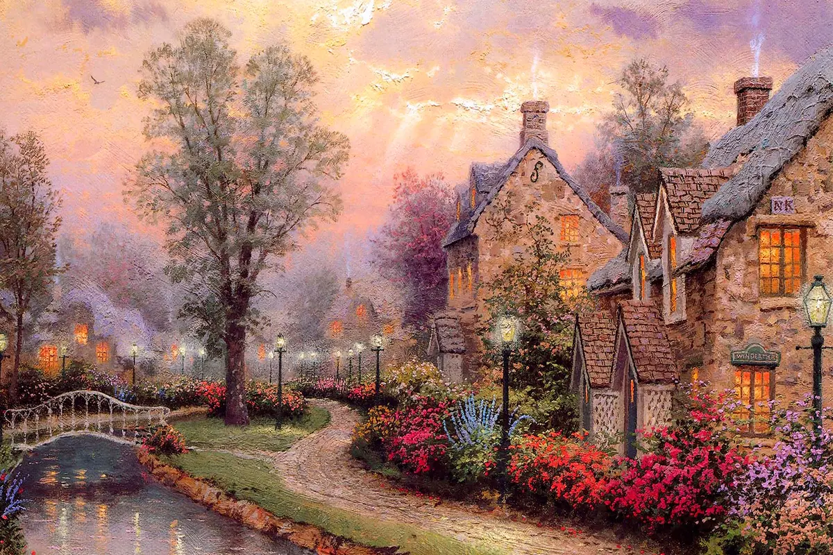 Poster Charmantes Dorf unter einem pastellfarbenen Himmel Nr f19091