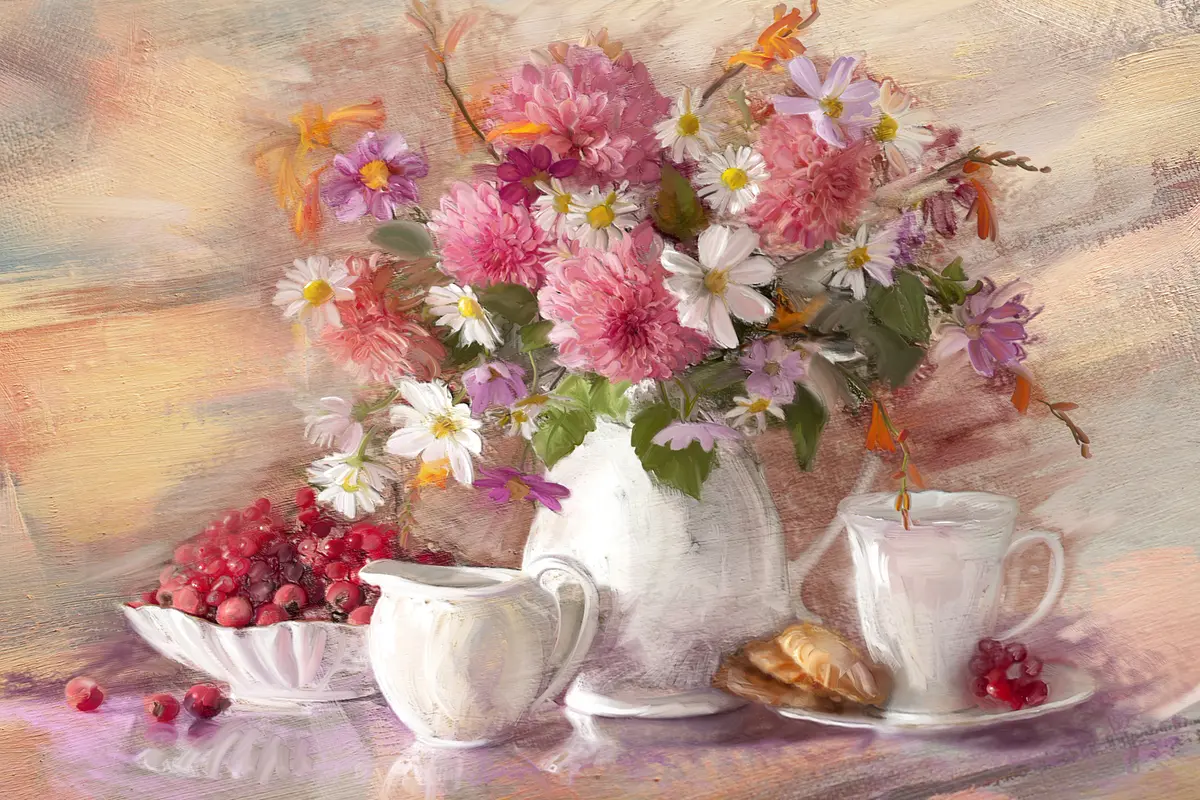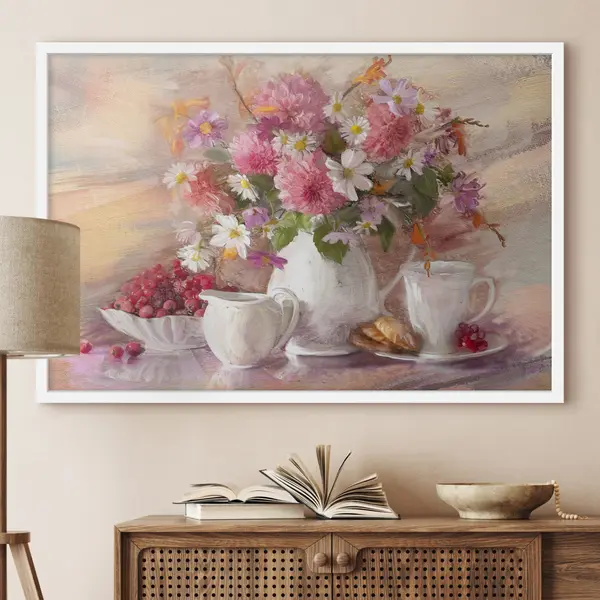 Poster Bezauberndes Stillleben mit leuchtenden Blüten Nr f29240