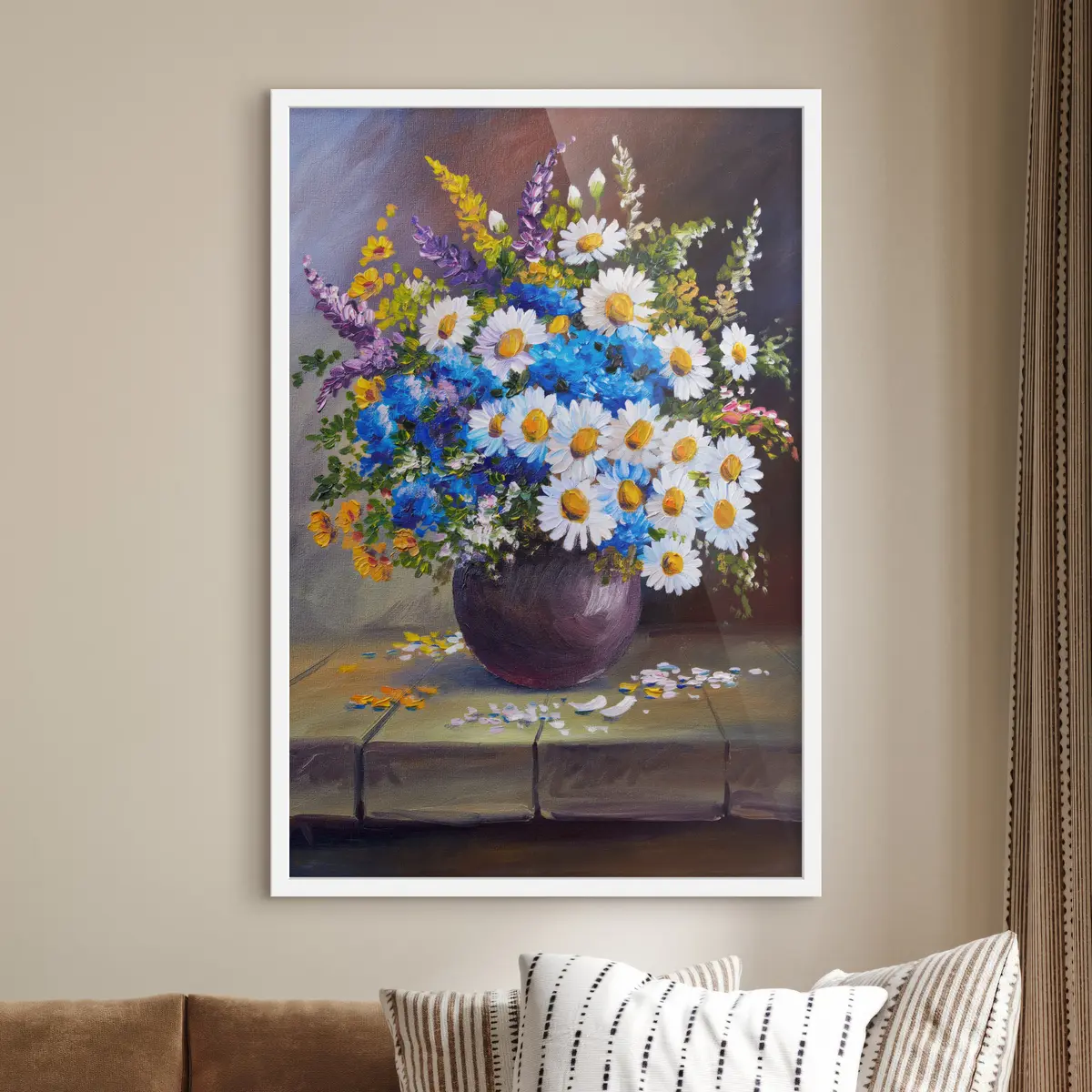 Poster Leuchtende Blüten in einer rustikalen Vase Nr f29912