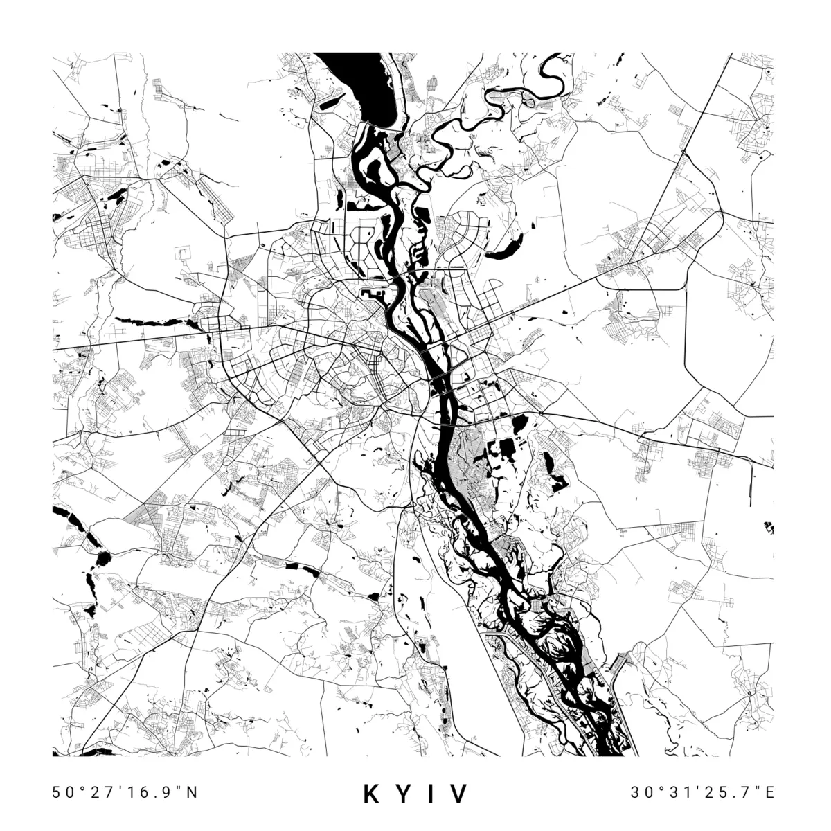 Poster Minimalistische Karte der Stadt Kiew in der Ukraine Nr f31428v1