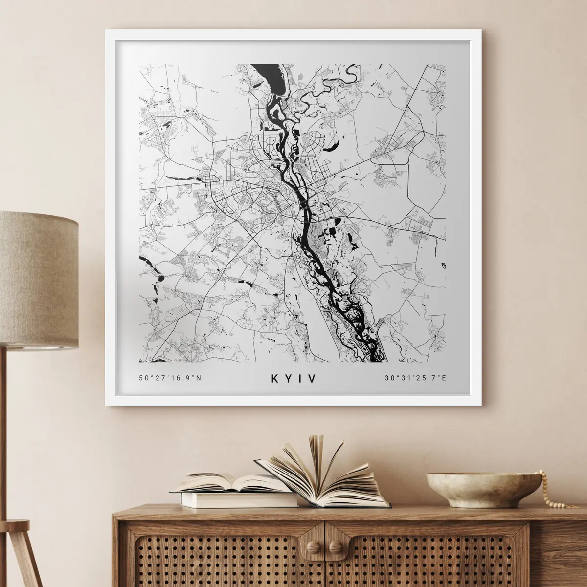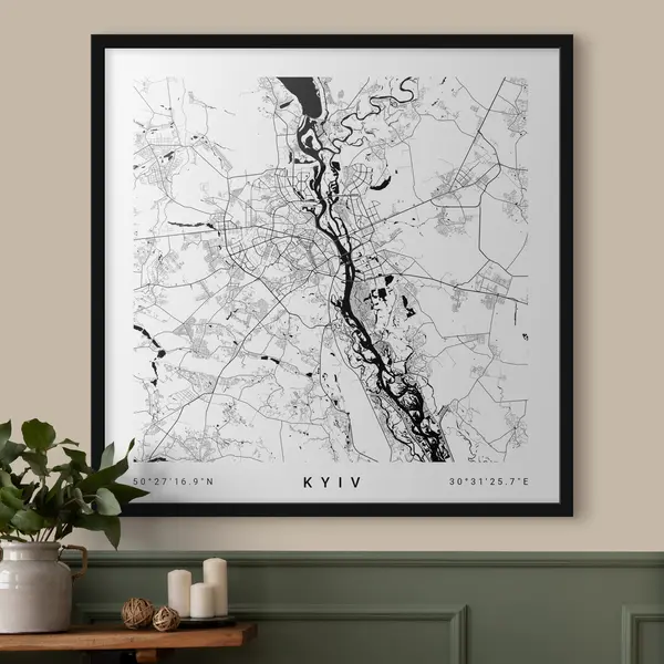 Poster Minimalistische Karte der Stadt Kiew in der Ukraine f31428v1
