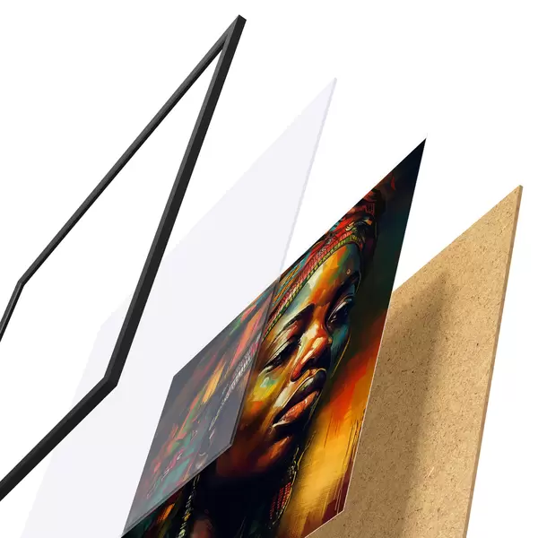 Das Poster besteht aus einem Rahmen, Plexiglas, einem gedruckten Bild und einer Rückwand aus Spanplatten. Dank der Halterungen auf der Rückseite kann das Poster sofort an die Wand gehängt werden.