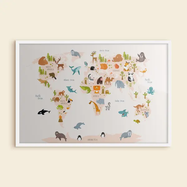 Poster Tierweltkarte mit niedlichen Illustrationen f31807