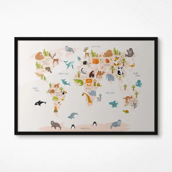 Poster Tierweltkarte mit niedlichen Illustrationen Nr f31807